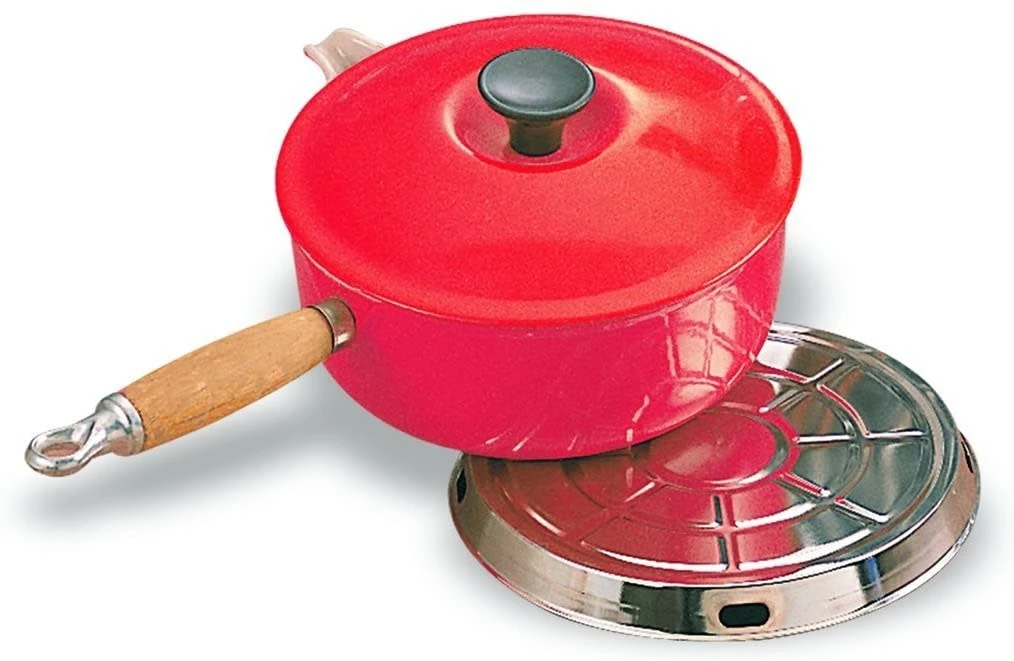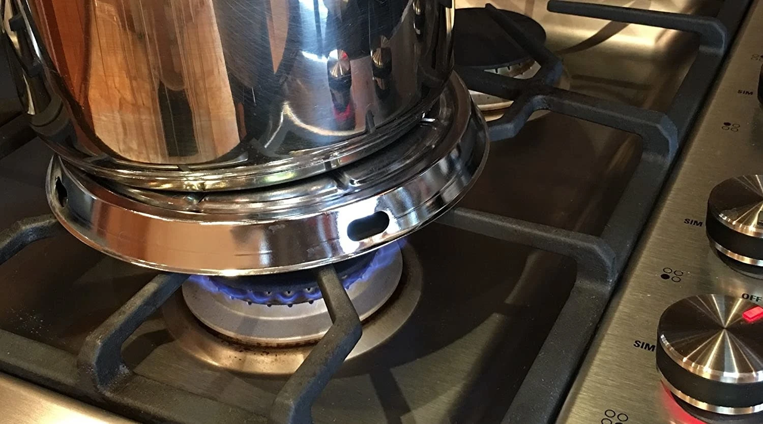The Flame Master diffuses heat evenly under your pot or pan. It prevents messy cooking mishaps like burning and boil overs. To use just place it over a gas or electric burner under your pot or pan. It substitutes as a double boiler-even protects glass cookware. A must-have item for any kitchen!