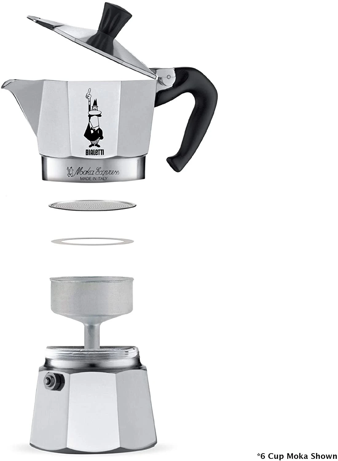 The Moka produces a rich, authentic espresso in just minutes. The aluminum pot features Bialetti’s distinctive eight-sided shape that allows it to diffuse heat perfectly to enhance the aroma of your coffee.