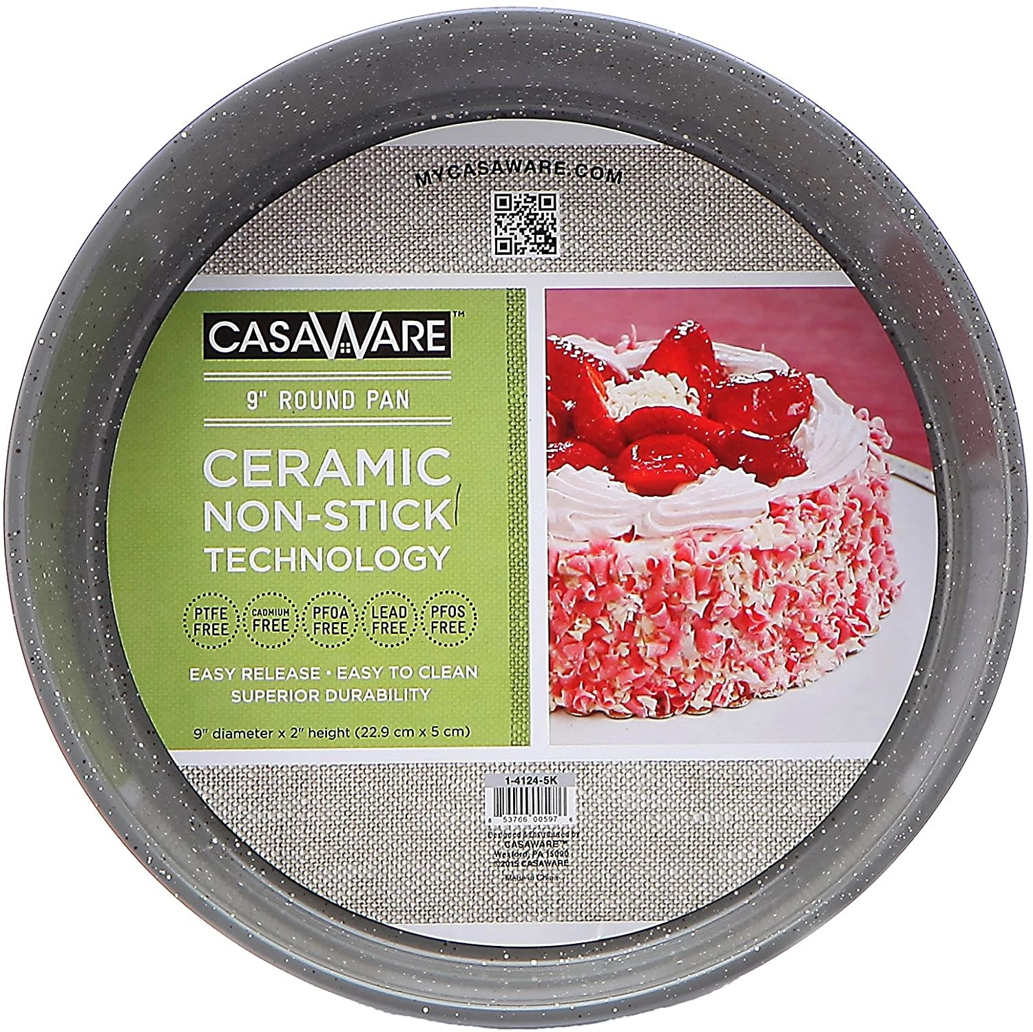 This pan features our exclusive silver colored granite ceramic coated easy release baking surface. Its rich cream and brown accent flecks make this bakeware both high fashion and high function.