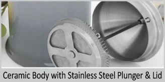 Brew robust coffee or teas any where in your kitchen with the Chantal ceramic French press. As part of Chantal’s Craft Coffee Collection the unassuming silhouette and defined coloring offer something to complement any design style. This press comes with a stainless steel plunger and a mesh screen that allows for a smooth brewing process while keeping out any unwanted sediment. The ceramic body is marked with a fill line giving a precise marker to prevent any spillover. This press will also ensure that any drink hot or cold will be kept at the desired temperature longer than any glass or stainless steel option.