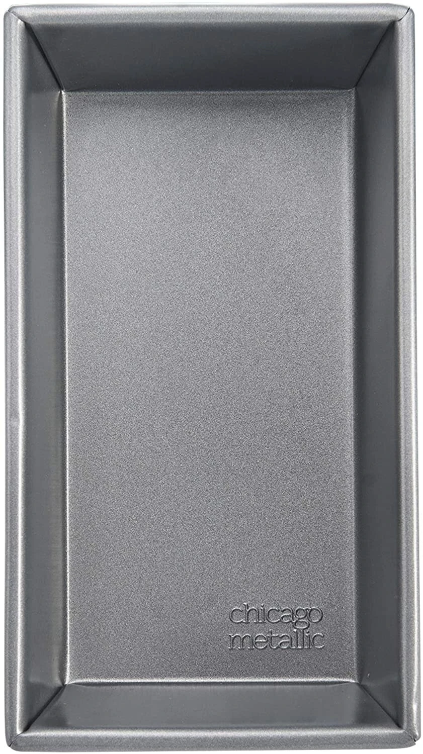The strong and durable aluminized steel construction of the uncoated Chicago Metallic Commercial II 1 lb. Loaf Pan offers superior heat conduction and even baking.