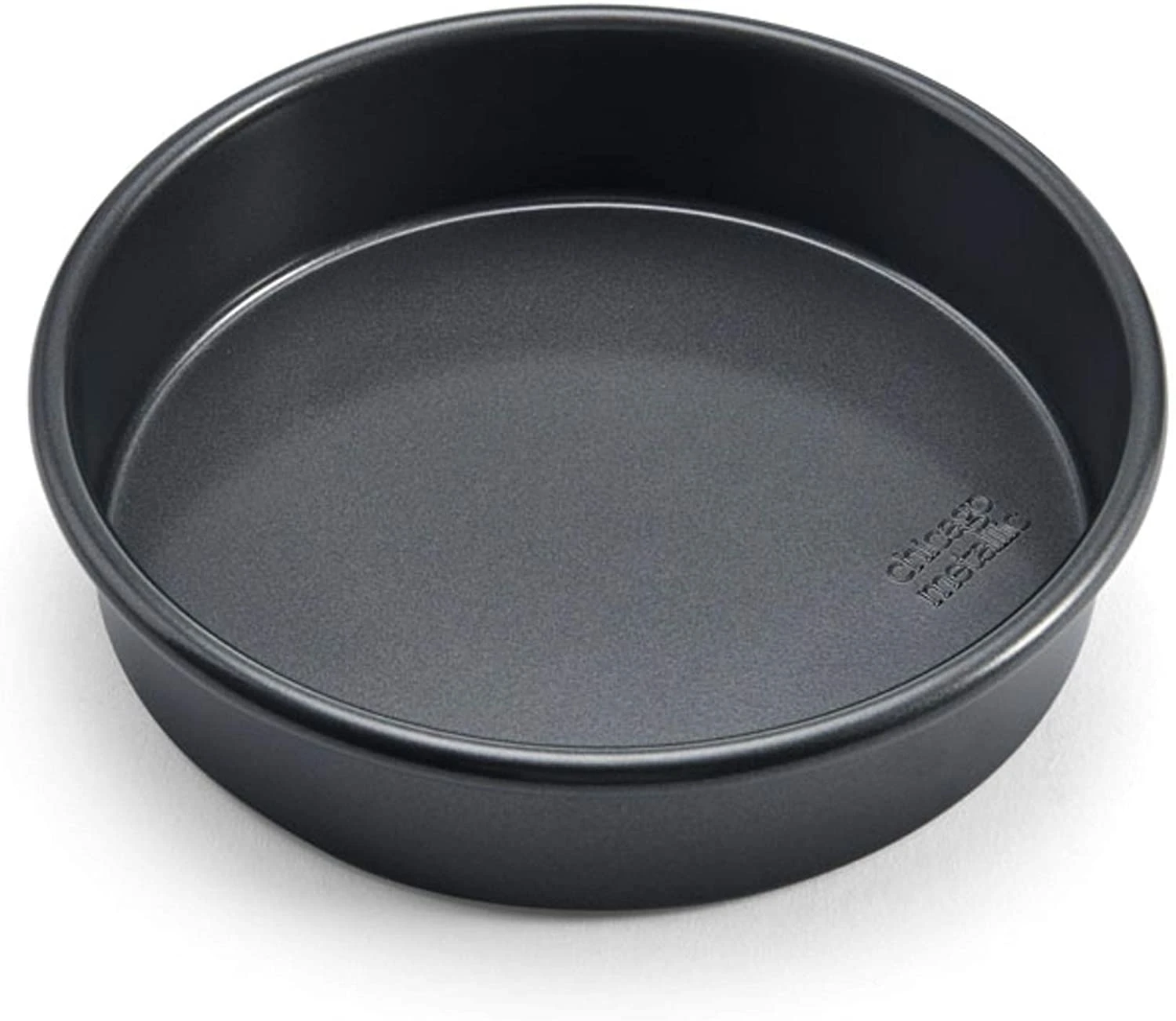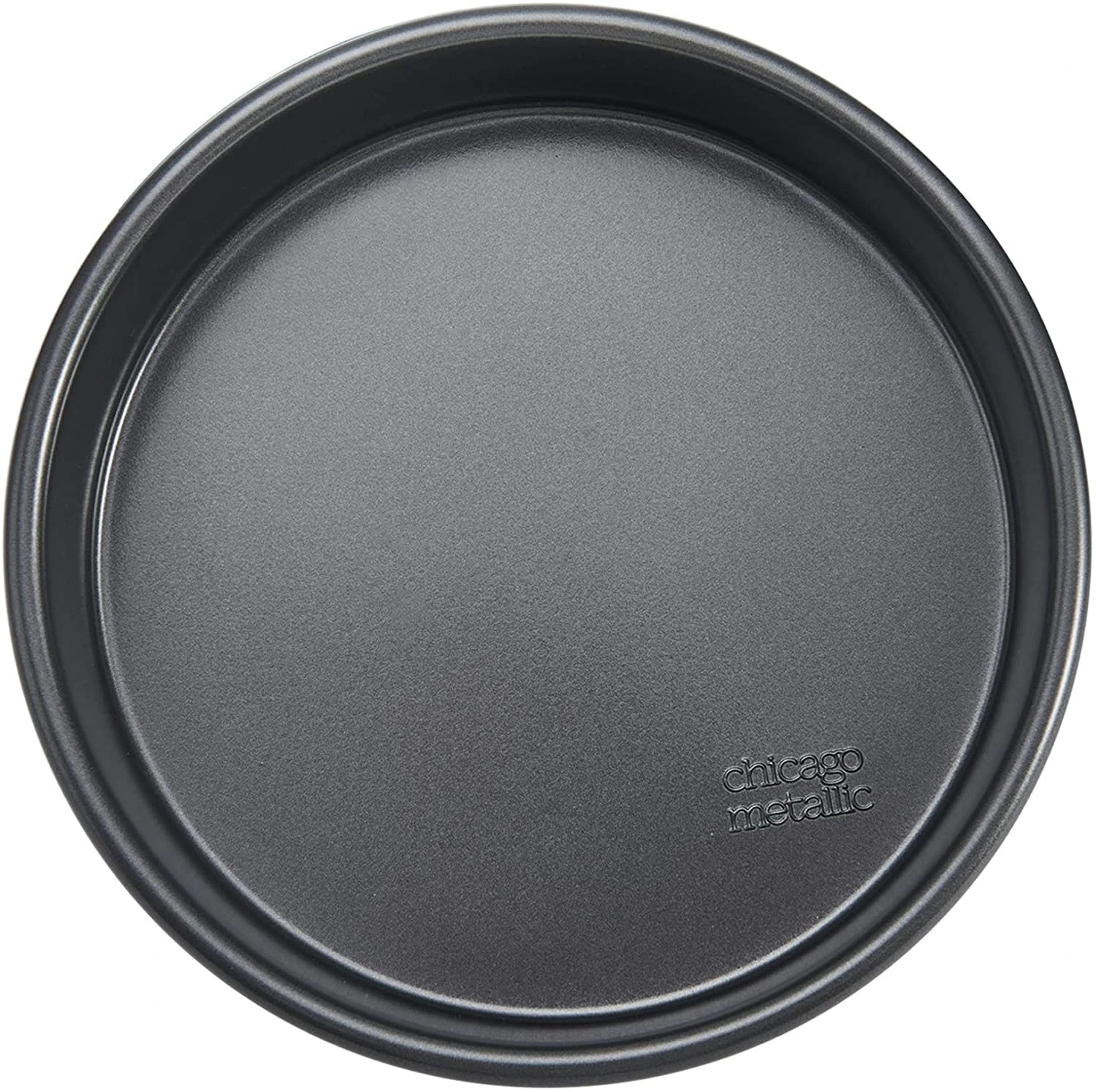 The Chicago Metallic Cake Pan is made from heavy weight aluminized steel for superior heat conduction and even baking and has a reinforced wire rod that prevents warping. This cake pan features an easy release, silicone based, non stick coating for ease of baking and cleanup.