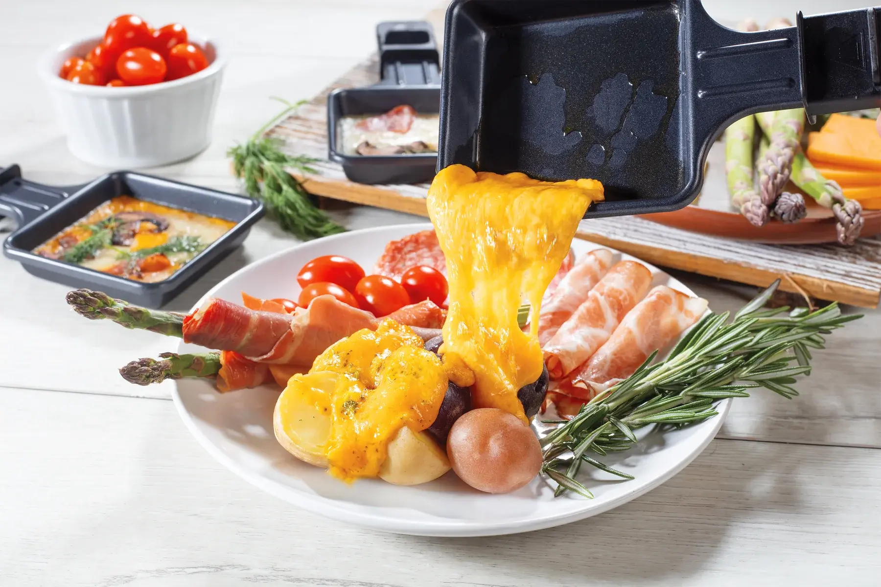 - Features 8 cheese raclette pans to melt your favorite cheese in minutes.