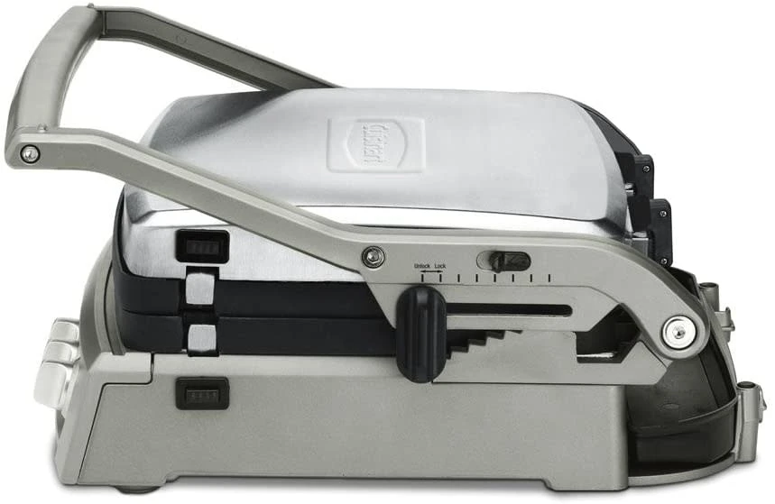 - 6 cooking options in 1: contact grill, panini press, full grill, full griddle, half grill/half griddle, and top melt