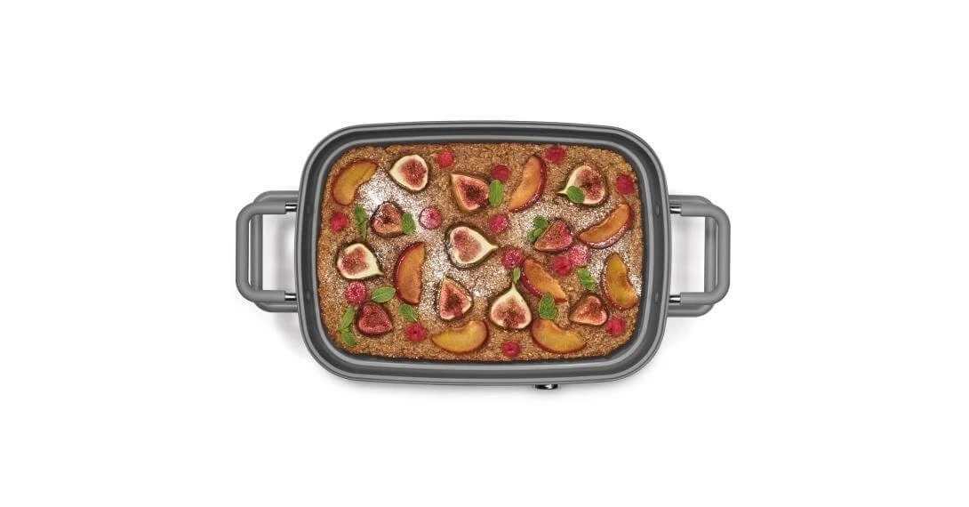 - Removable 5-quart non-stick pan for slow cooking, baking, griddling, and browning or sautéing
