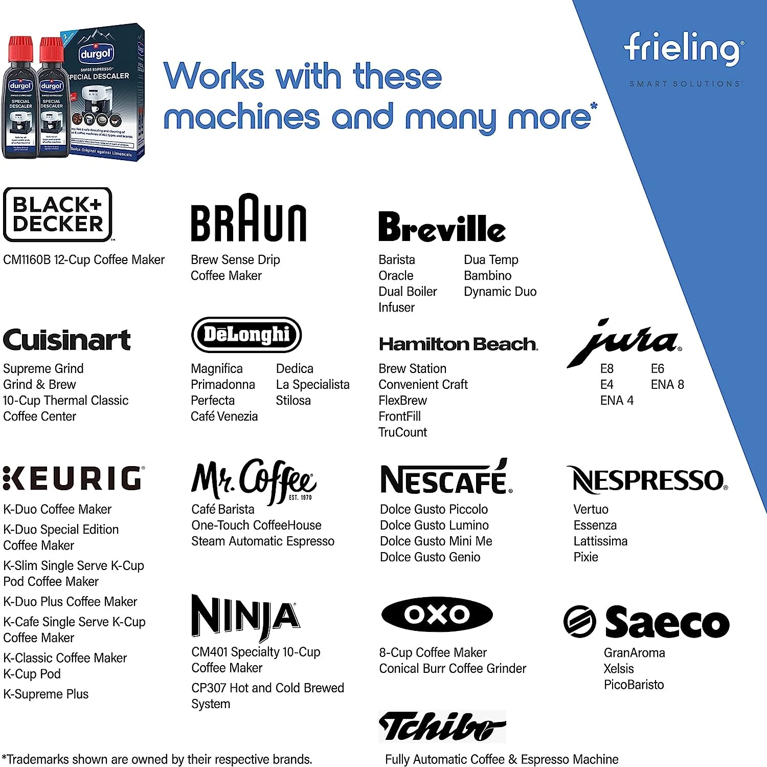 Durgol’s Swiss Epresso Descaler is a decalcifier formulated to protect and care for all brands of espresso machines. Use with fully or semi-automatic machines, manual machines, coffee pod or capsule machines. Also works with tea kettles, electric water heaters. Extends the life span of your machine. Powerful, yet gentle to the machine.