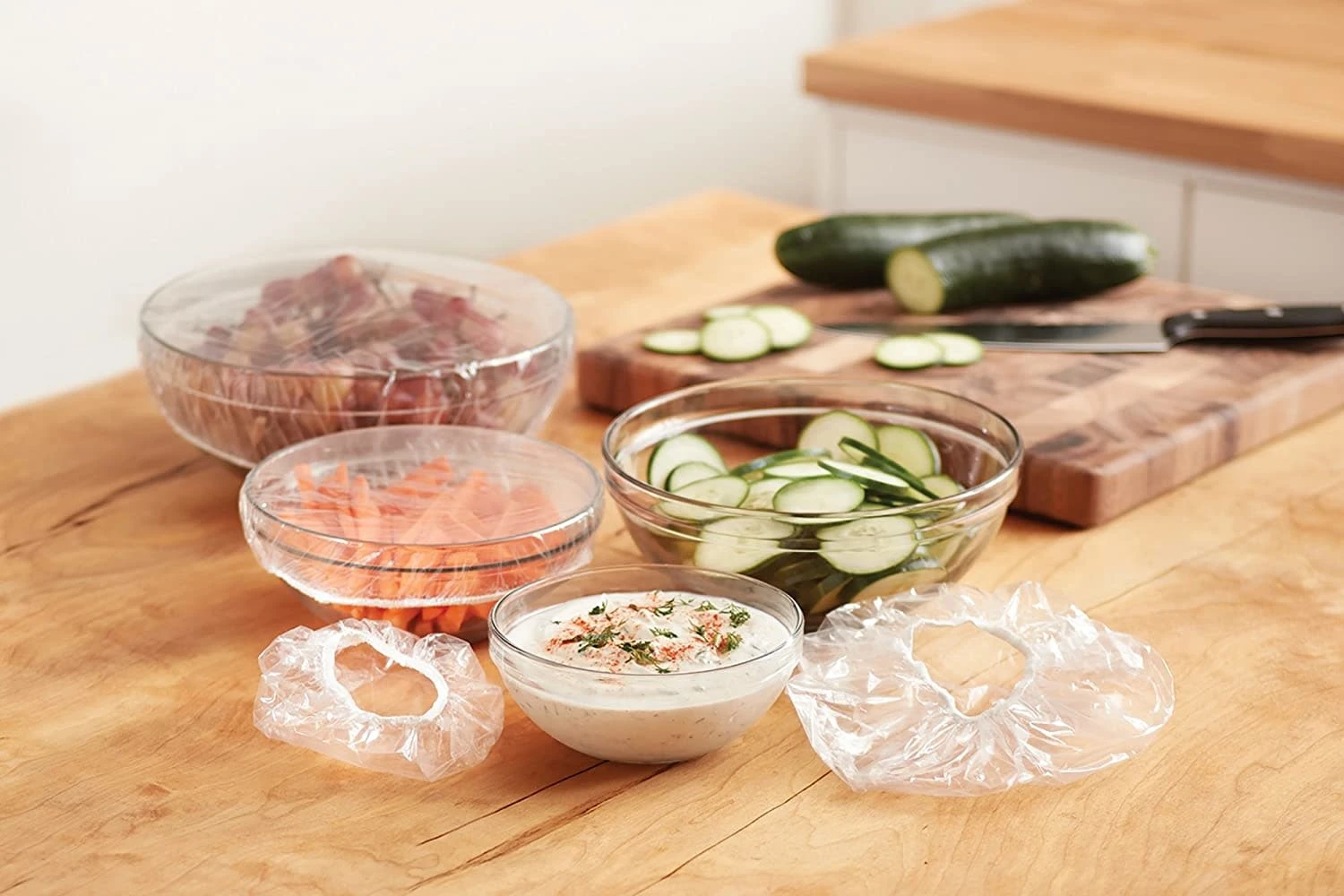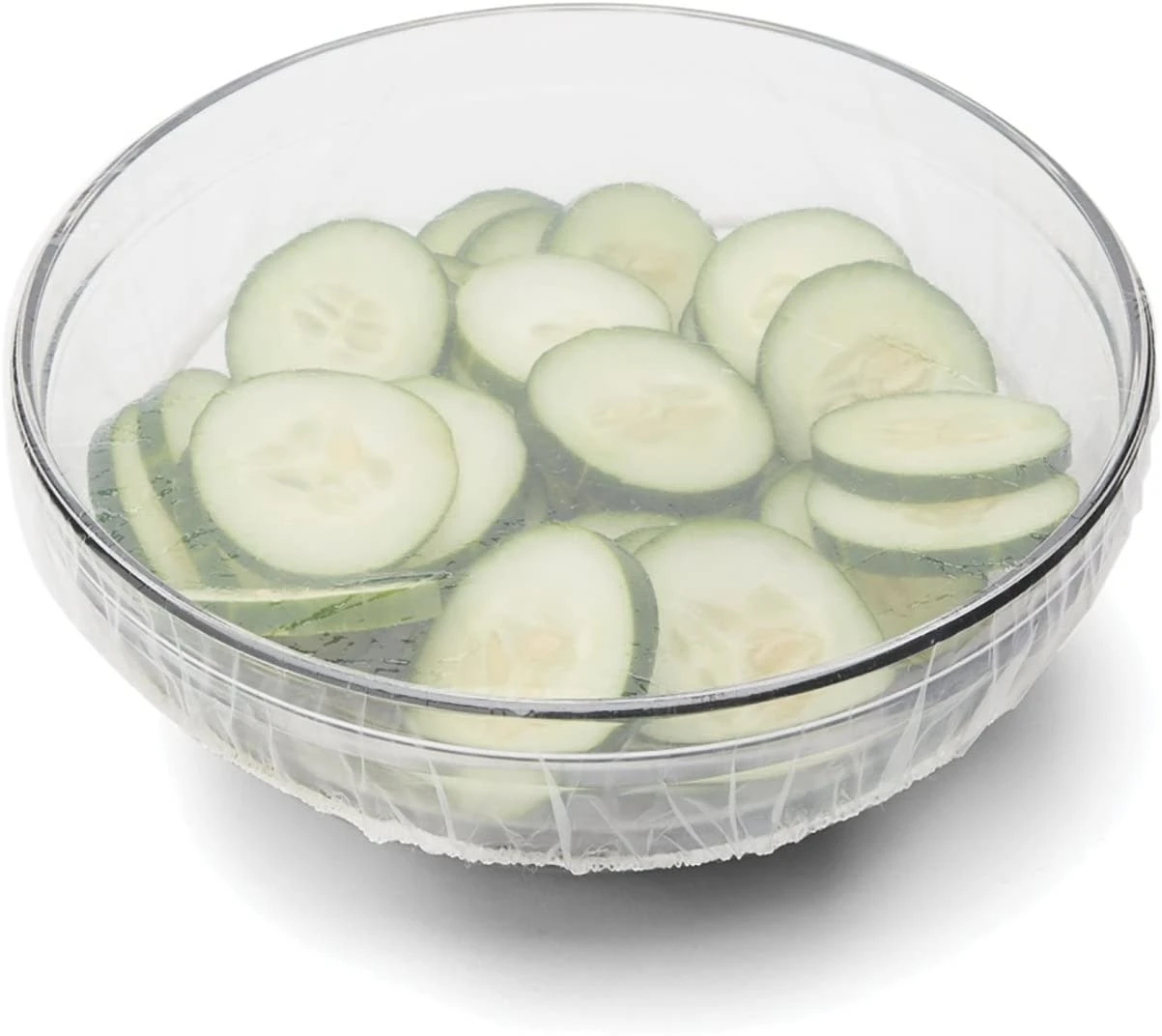 Reusable bowl covers grip various bowl sizes. No more transfers from bowl to bowl to refrigerate or reheat. Set of 50! Fits snugly around bowls, containers and plates, ceramic, metal, plastic or glass. Great for storing leftovers and keeping food fresh in the refrigerator or outdoors! Easier to use and stays on better than difficult foil or plastic wrap.
