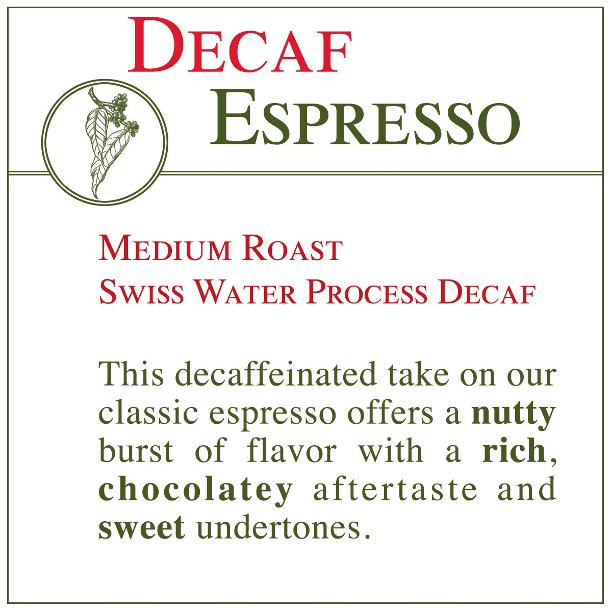 This decaffeinated take on our classic espresso offers a nutty burst of flavor with a rich, chocolatey aftertaste and sweet undertones.