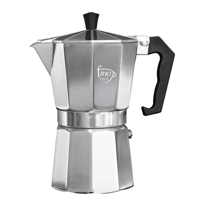 Fino’s Stovetop Espresso Coffee Maker brews a richer, more flavorful cup of coffee. They’re carefully crafted from aluminum with a European-crafted stainless steel safety valve, stay-cool polypropylene handle/knob, and silicone gasket. Safe for use on gas, electric, and glass stovetops, these heavyweight aluminum pots transfer heat evenly so water boils and diffuses through ground coffee at the perfect time and brewing temperature. Drip-free spouts serve fresh-brewed coffee without a mess. Stay-cool handles and lid knobs keep hands safe. Perfect coffee accessories for all coffee enthusiasts to brew a tastier cup of coffee, Fino’s Stovetop Espresso Makers are easy to use. Simply separate the top and bottom chambers. Lift out the center funnel and fill the bottom chamber with fresh water to just below the safety valve. Replace the funnel and measure in finely ground coffee. Reassemble the pot and place it over a medium-low heat. When coffee begins to bubble, take the pot off of the heat and allow coffee to finish brewing. They’re easy to clean and maintain. When used regularly, simply rinse with water to allow oils to coat the interior of the pot for a more complex flavor. Complete instructions are included. These espresso pots are sturdy, durable, and will never rust. Replacement silicone gaskets are available.