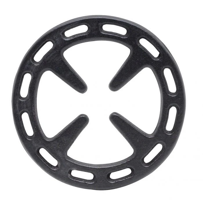 Ilsa’s Gas Ring Reducer quickly decreases the size of gas burner openings in center grates so that smaller cookware and accessories have a stable cooking surface. Made in Italy from cast iron, Ilsa’s Gas Ring Reducer is easily placed over the gas burner to eliminate unsteady cooking conditions for better kitchen safety practices. The cast iron is durable, sturdy, and absorbs then diffuses heat evenly for greater energy efficiency. It’s ideal for use under smaller cooking vessels and accessories, like sauce pans, tea kettles, butter warmers, Turkish warmers, omelette pans, stove-top coffee makers and espresso pots, flame-safe measuring cups, and more. Made in Italy from cast iron, Ilsa’s Gas Ring Reducer is durable, sturdy, and compact for easy storage. Measures 5-inches in diameter. Wipe clean or hand wash in warm, soapy water and dry thoroughly.