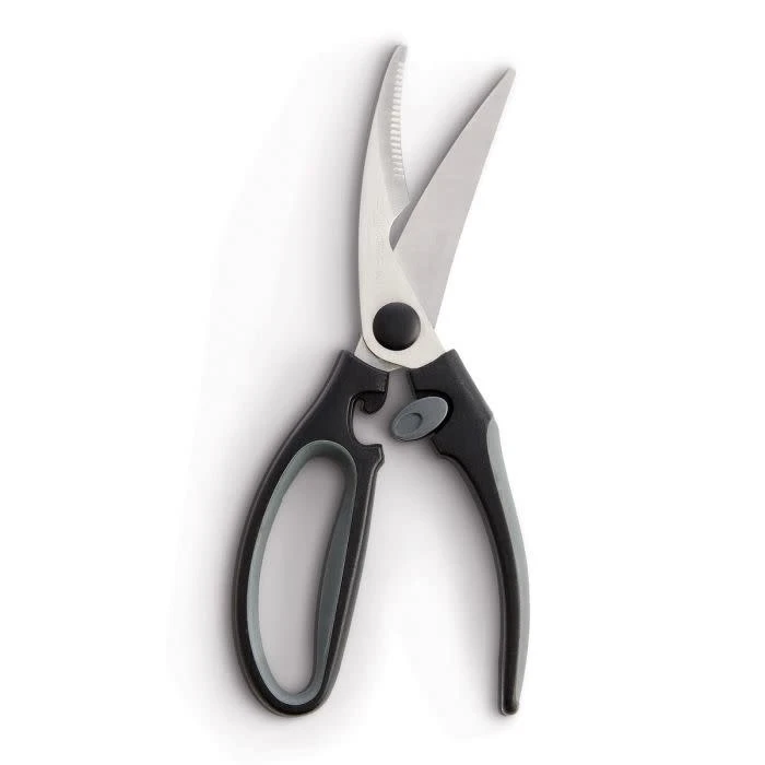 HIC’s Poultry Shears easily separates joints, cuts bones, and removes skin. An essential addition to roasting tools, the curved blades offer more cutting power with less effort. The tapered tips reach into tight areas to make precise cuts and reach into tighter spaces. It’s ideal for cleaning and preparing chicken, turkey, game hens, and more. Its specially shaped spring-action, ergonomic comfort-grip handle allows safe, repetitive cutting without adding strain to hands or wrists. Made from cutlery-quality, high-carbon 420J German steel, HIC Roasting’s Poultry Shears stay sharper, more corrosion resistant, and hold an edge longer over traditional stainless steel. Hand wash in warm, soapy water. Brought to you by HIC-Harold Import Company.