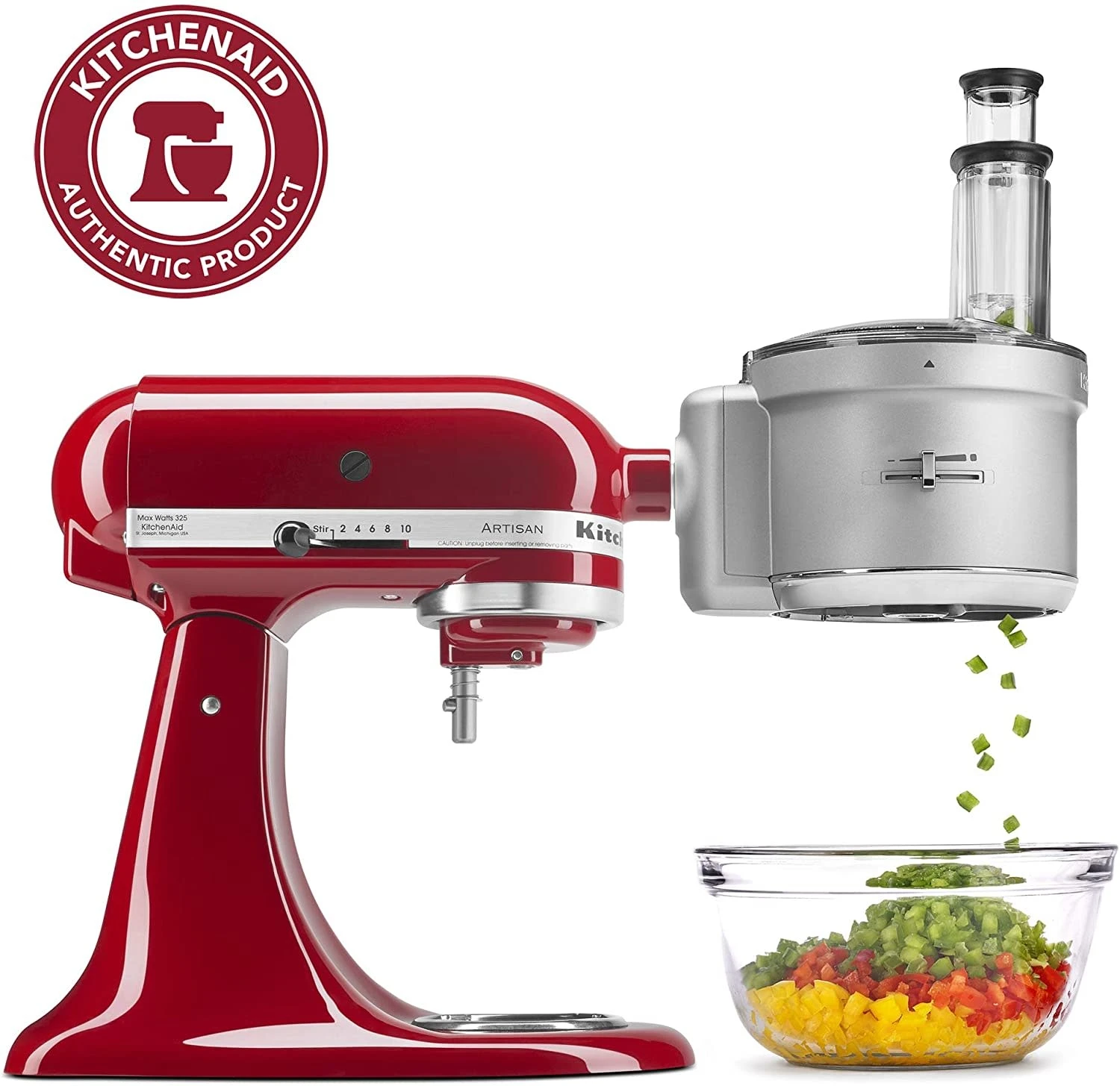 - Compatible with any KitchenAid stand mixer, this space-saving attachment is great for all sorts of everyday tasks, from slicing potatoes or dicing carrots to shredding cheese.