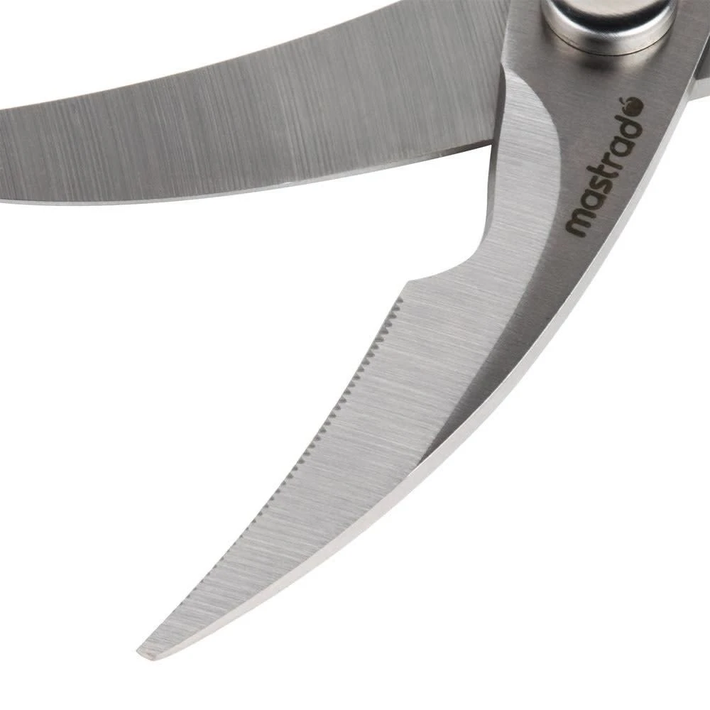 Use these heavy duty Mastrad poultry shears to cut through poultry or pizza quickly and easily. The long, curved blades are constructed of high quality reinforced stainless steel, and provide both the strength and precision needed to break down a chicken or cut through a tough pizza crust. May also be used as pruning shears.