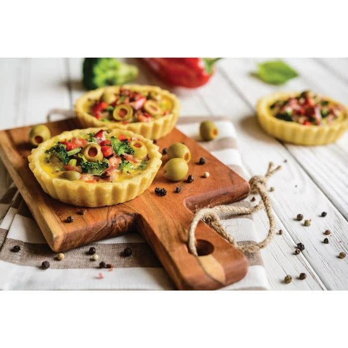 - Great for baking smaller portions and individual quiche, mac and cheese, shepherds pie, mini pot pies, apple pies, tarts, tortes, and more