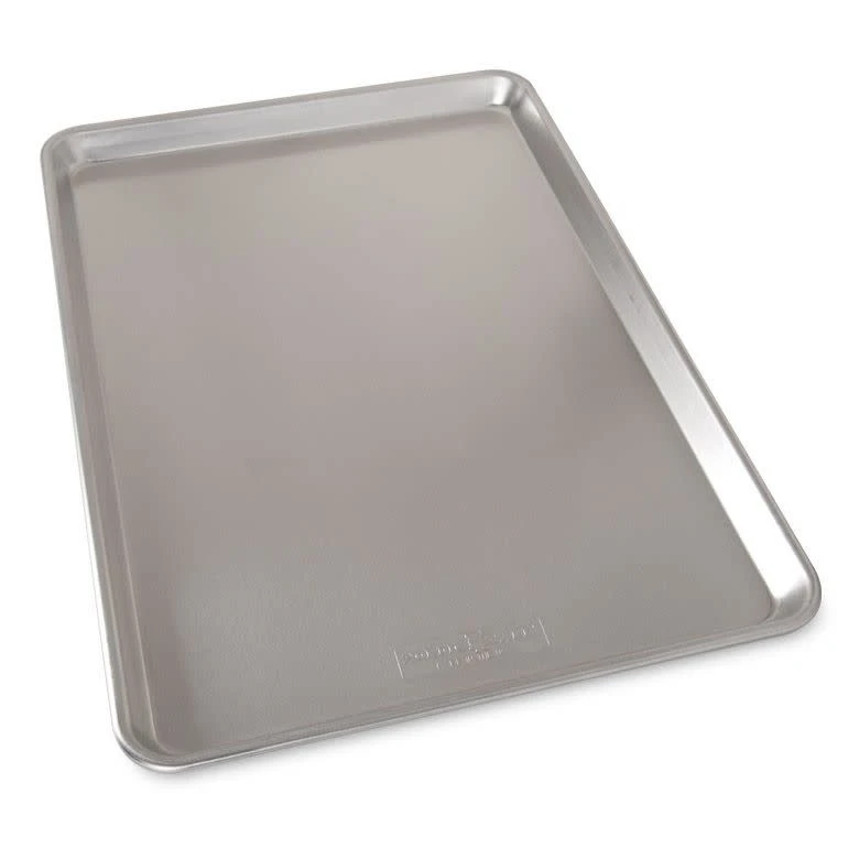 - Baker’s Big Sheet Pan Natural aluminum, commercial bakeware is made of pure aluminum which will never rust for a lifetime of durability.