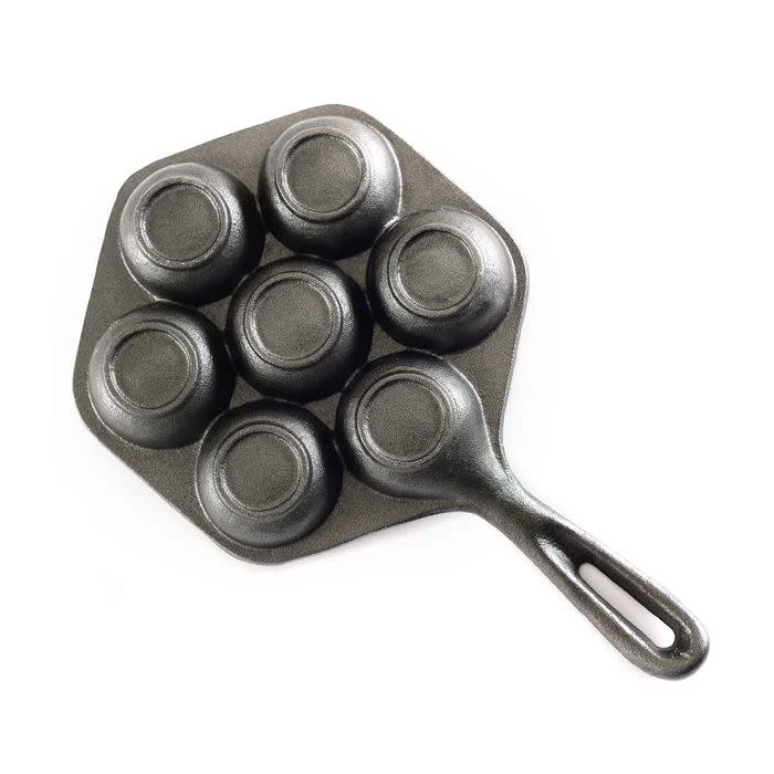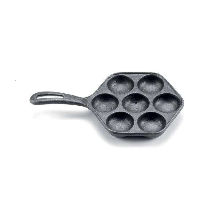 Enjoy traditional Danish stuffed pancakes made right in your home with the Aebleskiver pan by Norpro. Crafted of cast iron, it makes up to seven perfectly shaped pancake puffs at a time. The ergonomic handle stays cool to the touch for safe, comfortable cooking, and the pan heats quickly and evenly. Best of all, recipes delectable enough to inspire both novice and well-seasoned cooks are included.