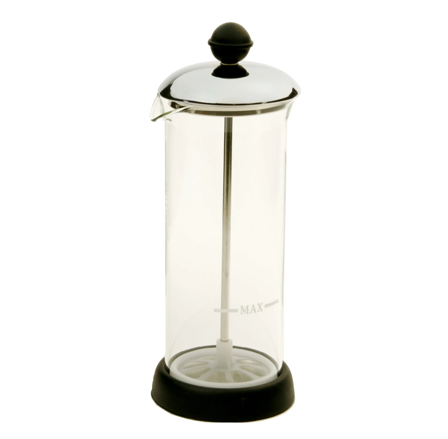 Frothing milk manually, without adding steam, produces a lighter, longer lasting froth. Use this glass beaker with manual pump action to make froth to spoon onto all your coffee drinks, hot chocolate, even desserts. Cream, hot or cold milk and or non-fat milk froths beautifully.