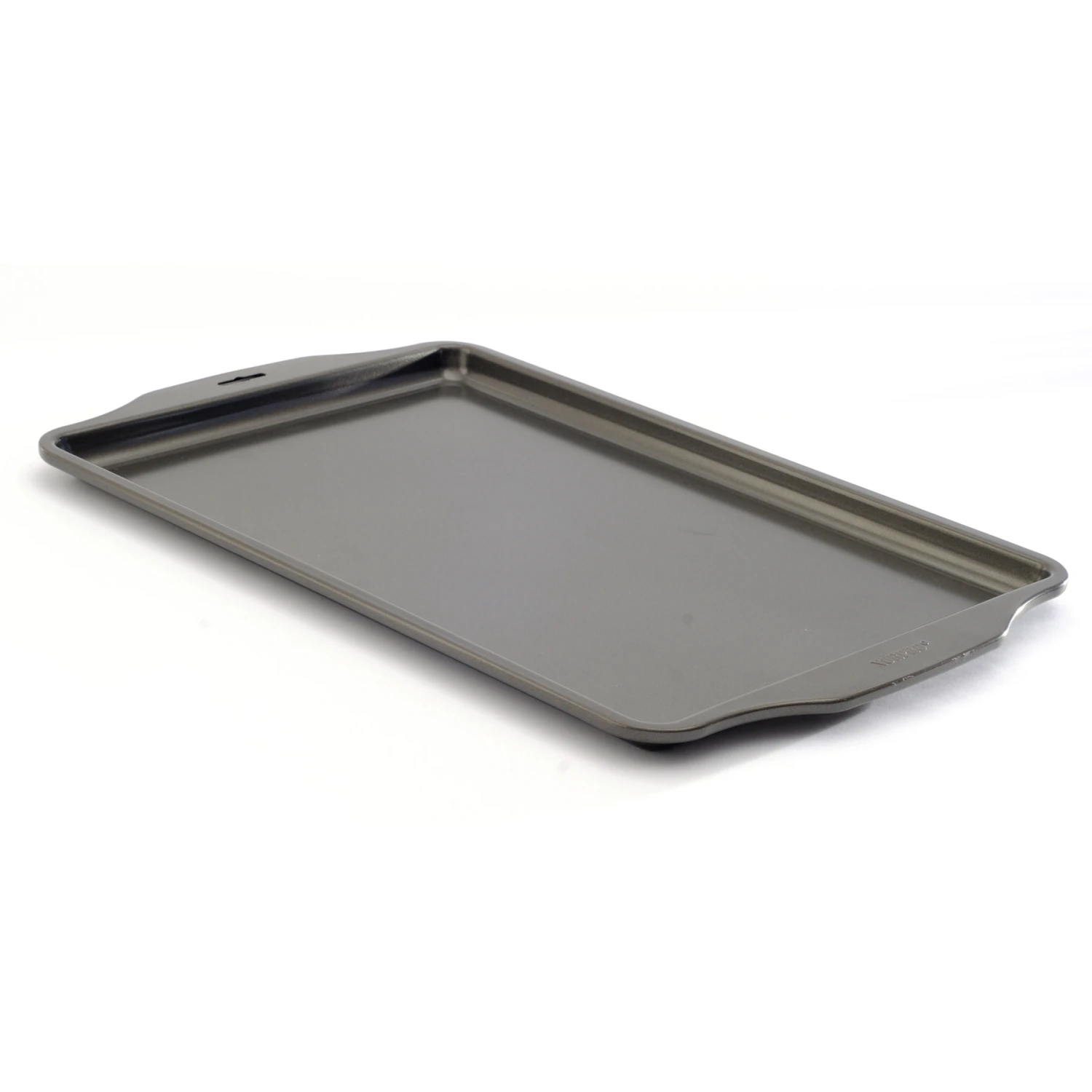Bake up a batch of sweet chocolate chip cookies with this baking sheet from Norpro. Constructed from durable nonstick aluminum, this high quality pan is meant to look great and last. The traditional large rectangular cooking area is perfect for baking up cookies, pastries, biscuits and french fries. You can rest assured that this pan also features walled edges to keep your food on the pan and prevent unnecessary messes.