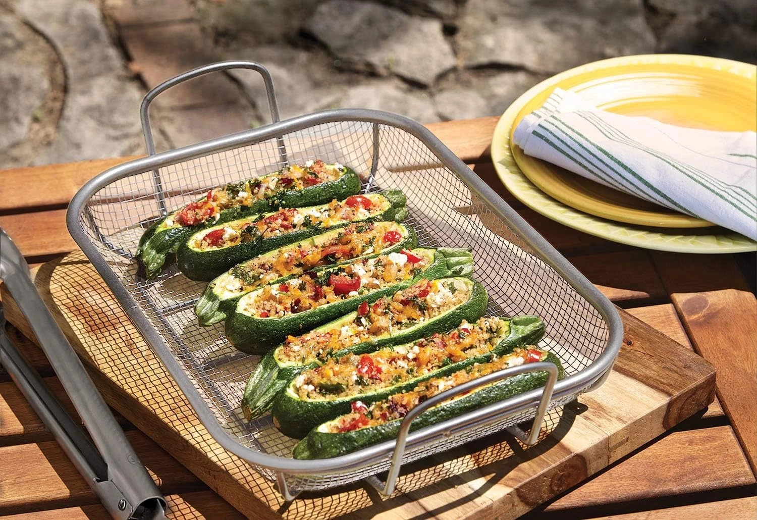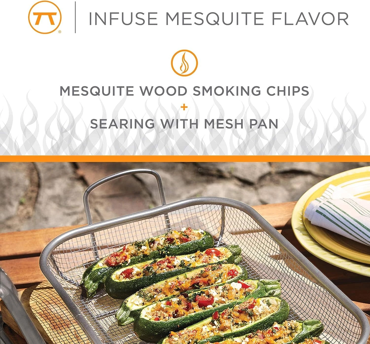 - Mesh design promotes the infusion of a smoky, grill flavor into foods
