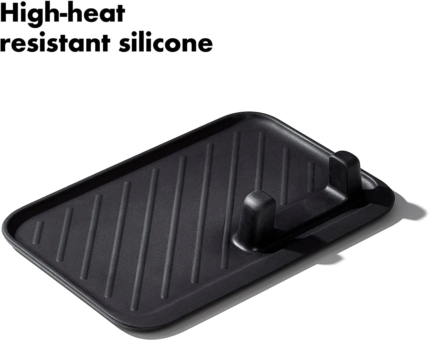 - Tool rest protects surfaces and features a tong holder for one-handed use