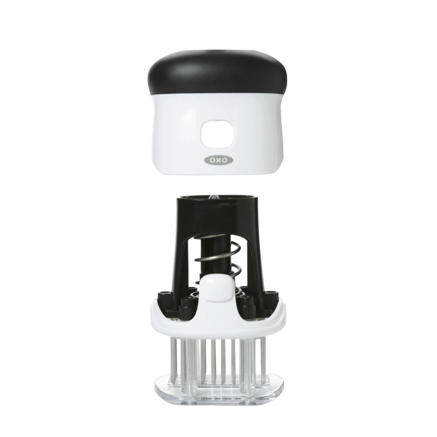 OXO Good Grips Bladed Meat Tenderizer has sharp, durable blades create pockets to reduce marinating and cooking time, allowing meat to retain its natural juices and promoting uniform cooking.