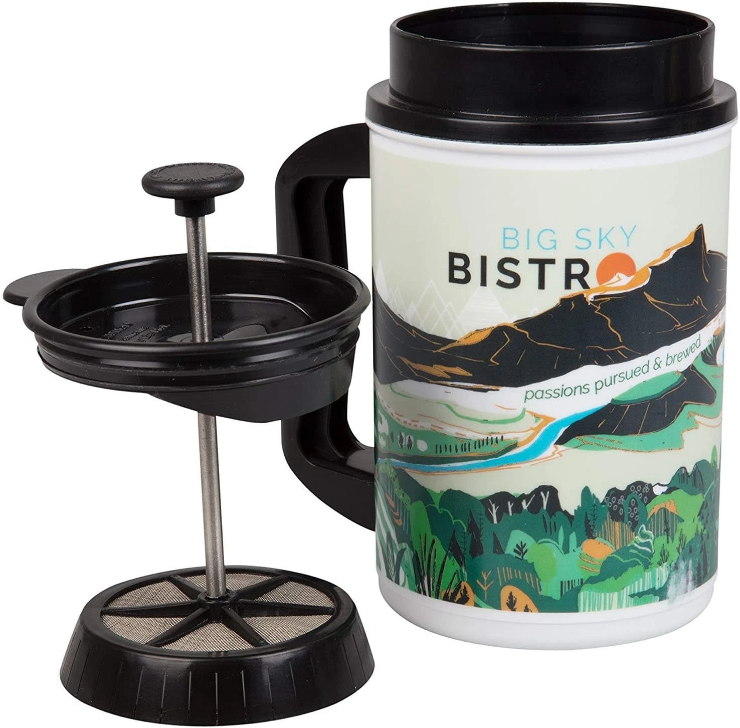 - The Big Sky Bistro French Press Travel Mug by Planetary Design is inspired by a passion for the outdoors, and brewing the perfect cup of coffee or tea anywhere.