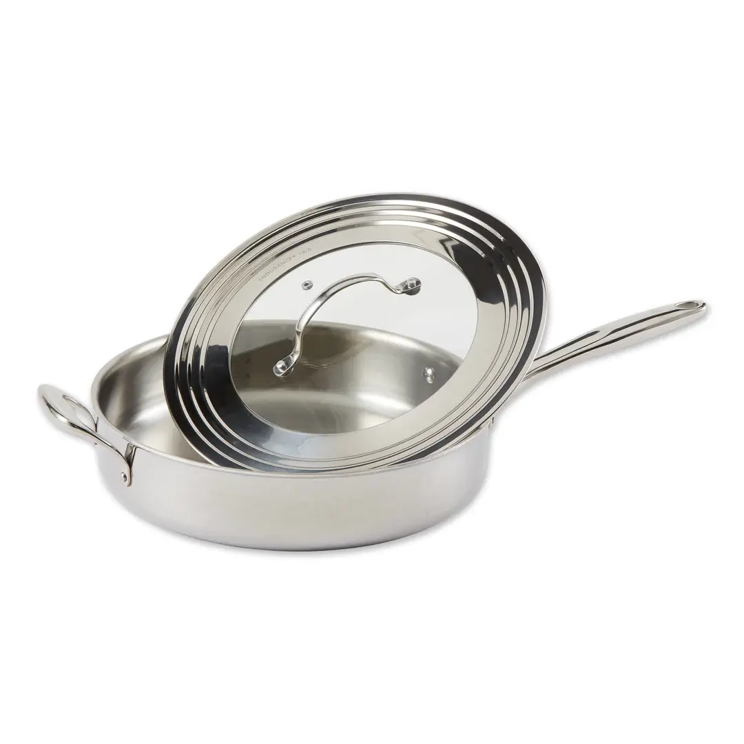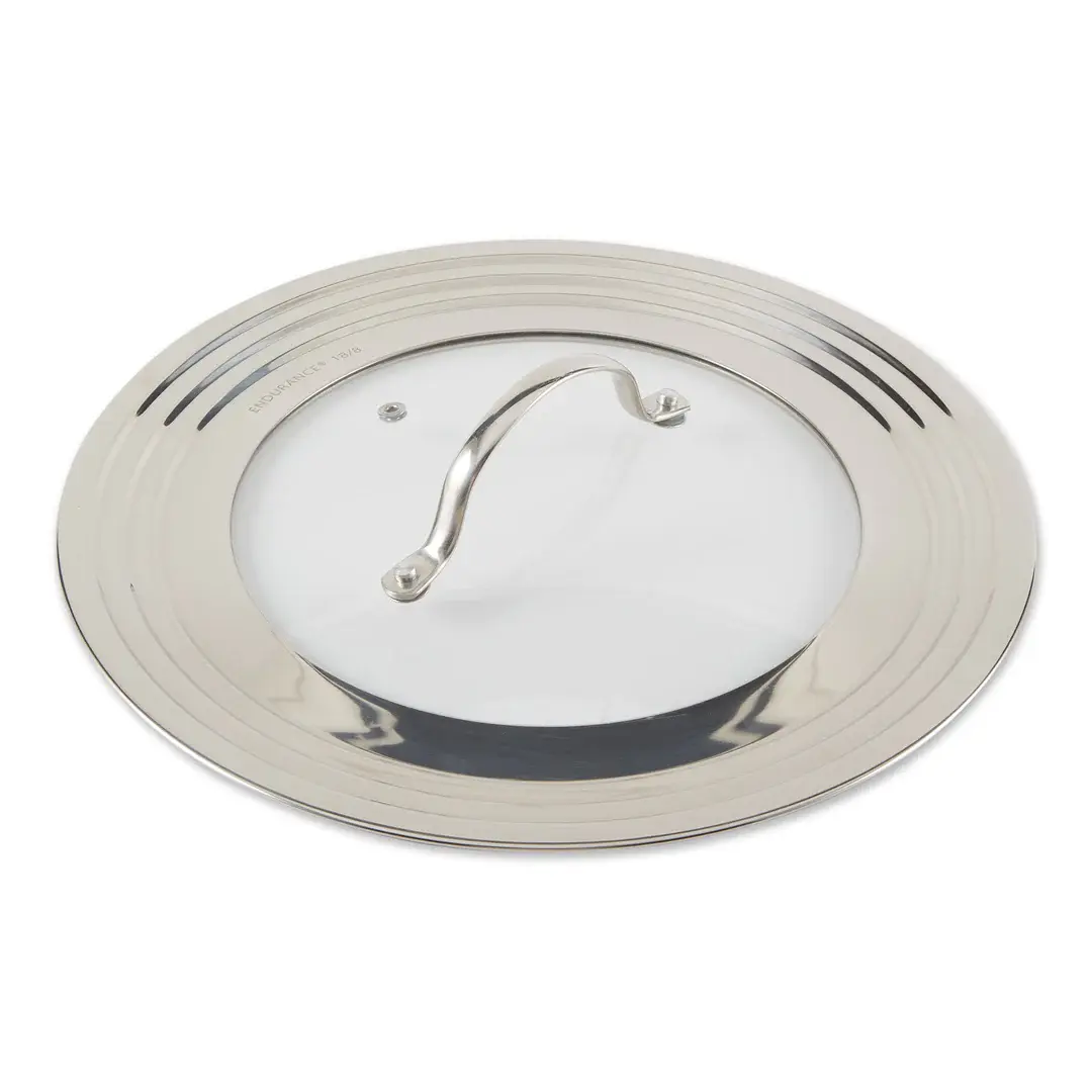 Never look for a matching lid to your pans again with the universal lid from RSVP. This durable 18/8 stainless steel lid has a polished finish with a tempered glass insert that allows you to see your food while it’s cooking. It fits frying, saute, sauce pots and stock pots from seven to 12 inches in diameter and features a steam vent.