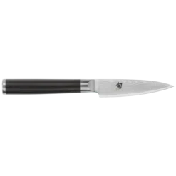 The Shun Classic Paring Knife is a must-have for every kitchen. Think of it as the mini version of the chef’s knife because, like the chef’s knife, the paring knife is quite versatile. It gets its name from its main function—removing or “paring” away things like peels or pits from fruits and vegetables. Its small size gives you complete control over the tip and edge of the blade. Generally, you use this knife in your hand rather than against a cutting board, though paring knives can also be used for cutting small foods, such as garlic cloves or ginger.