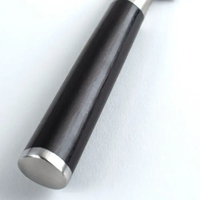 - D-shaped ebony-finished Pakkawood handles are comfortable for both left- and right-handed users; durable, beautiful, and won’t harbor bacteria