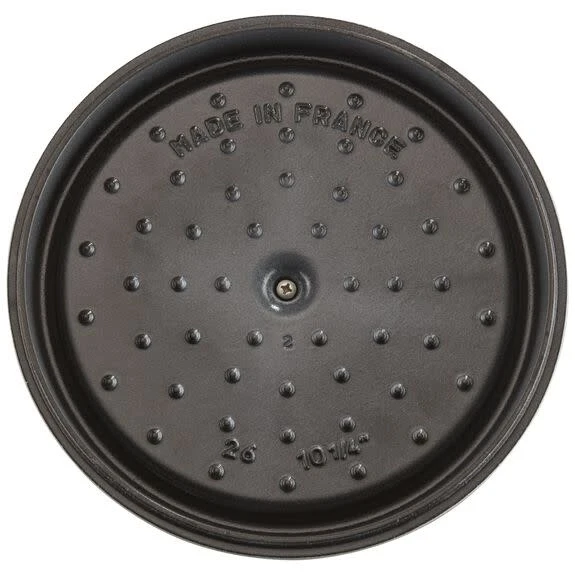 The Staub Cocotte is unsurpassed for slow-cooking meats and vegetables to tender perfection, and for simmering hearty stews and soups. Cast iron possesses exceptional heat-retaining qualities, so the pot heats evenly throughout. The innovative lid features tiny spikes on the interior that continually release condensed liquid back onto the food, yielding moist, flavorful results. Staub’s special matte black enamel interior and self-basting spiked lid guarantee perfect browning and braising for flavor-enhanced food. With their exquisite enamel finish, each piece transitions beautifully from the kitchen to the table. From comfort food to sumptuous suppers, every dish is special when served in Staub. Staub enameled cast iron cookware is the choice of the world’s best chefs. With exceptional durability, it is perfect for day-to-day use in both gourmet home kitchens and prestigious restaurants around the world. Built to last a lifetime, these heirloom pieces can be passed from generation to generation.