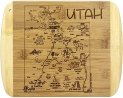 From the original bamboo cutting board company, Totally Bamboo, this cutting board is a beautiful, functional, ecologically sound addition to any kitchen. Totally Bamboo uses ‘Moso’ timber bamboo which is neither a food source nor a habitat for the Giant Panda. Totally Bamboo’s cutting boards are assembled with approved food-grade glue — none of their products are made with formaldehyde-based glue. No dyes or stains are used in the manufacturing process. The pleasing designs are created by combining originally-colored bamboo with steamed bamboo, which darkens due to caramelized sugars within the wood. Totally Bamboo prides itself on using only premium hand-selected bamboo, innovative design, exemplary craftmanship, and fair labor policies.