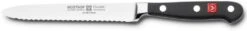 Effortlessly slice through crusty rolls, bagels, hard salami, ripe tomatoes, and more with this precision-forged 5” Serrated Utility Knife from Wusthof.
