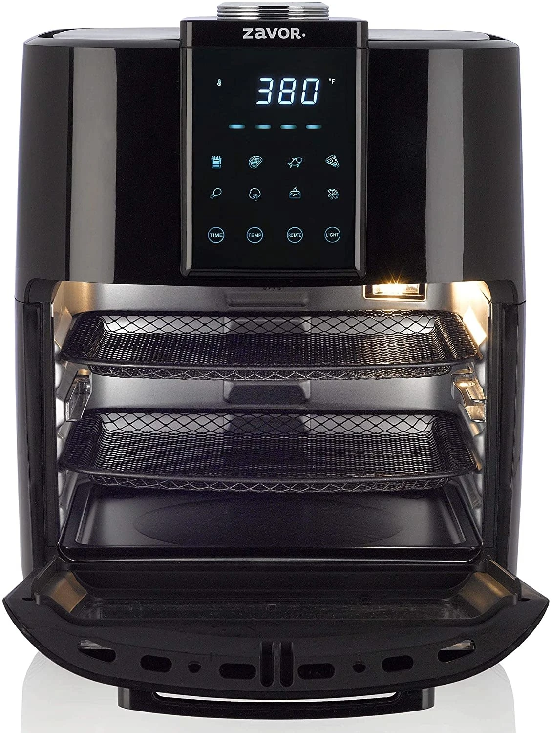 The Zavor Crunch Air Fry Oven replaces a traditional air fryer, grill, rotisserie, dehydrator, toaster oven, roaster, and a convection oven to bring you one multifunctional powerhouse. Its 12.7 Qt. capacity provides more room for more food and better results. Air Frying is Healthier than traditional Deep Frying and Faster than Conventional Oven baking. Eliminate the need for hot oil and rely on just hot air circulating around the food to achieve the same or better crispy, fried feeling. Its convection technology allows requiring little to no pre-heating time, unlike traditional ovens.